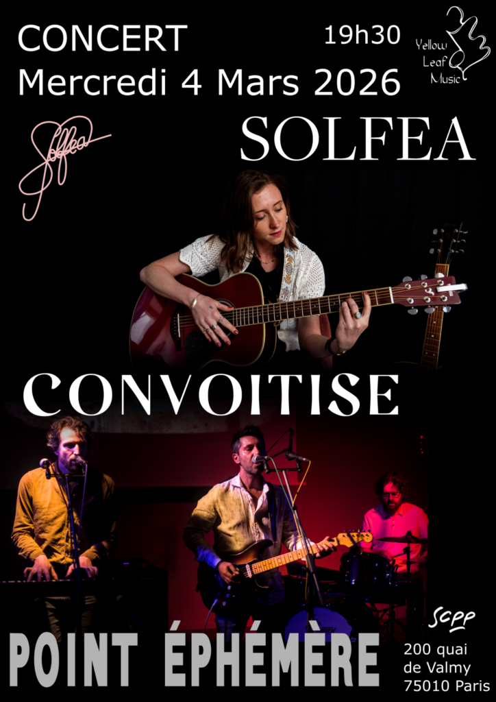 Non classé, Nouvelle, Nouvelles, Sorties, Spectacle Concert Solfea – Convoitise 23 janvier 2026 Mathieu THEVENIN Le 4 mars 2026, au point éphémère, à Paris Billets en ligne avec Billetsweb Vente de billets en ligne